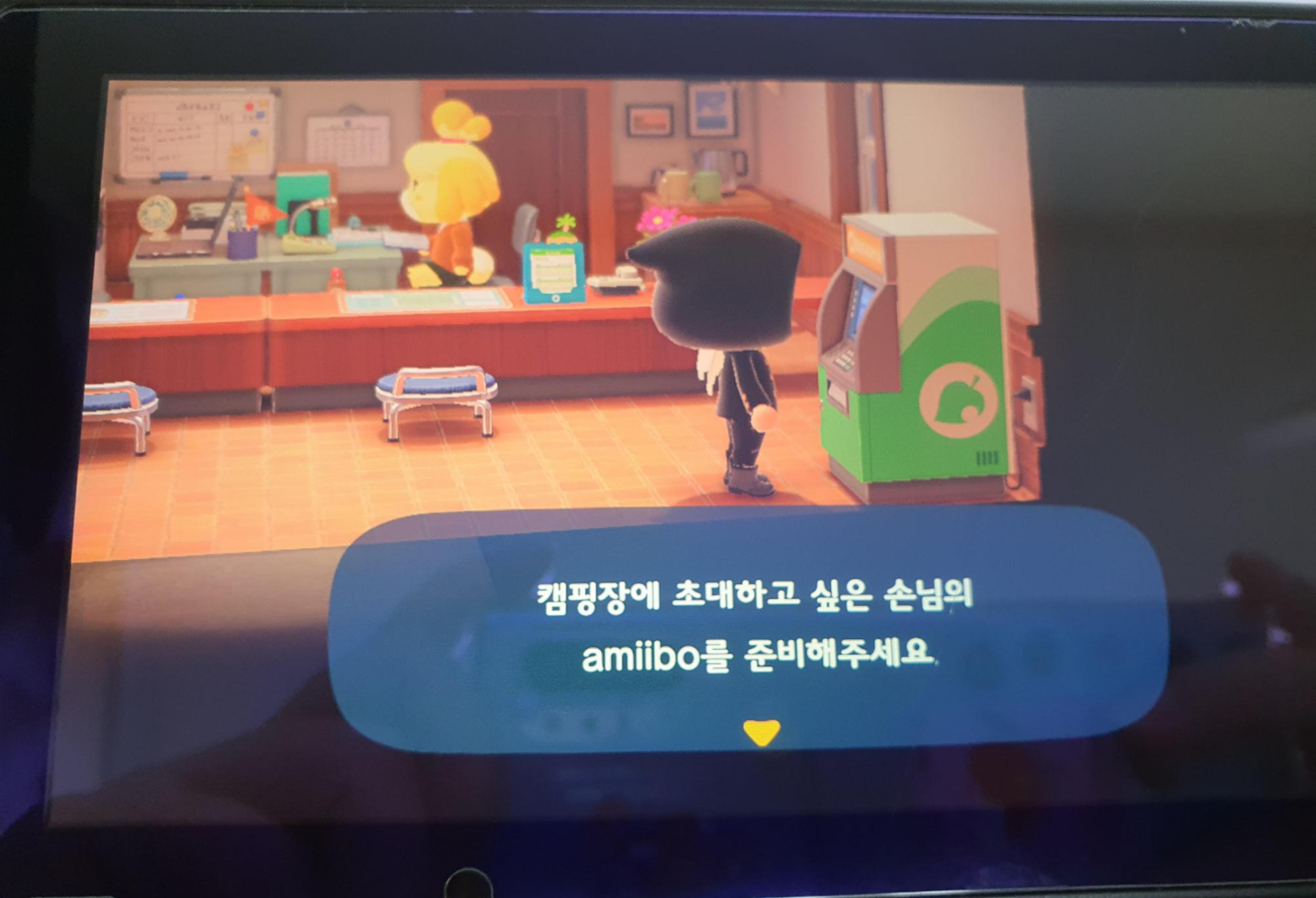 아미보카드가 잘되는지 바로 해봤어요 안내소에 가서 손님초대를 해봅니다